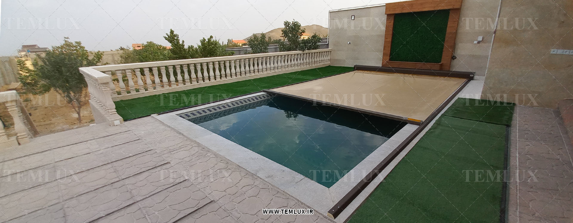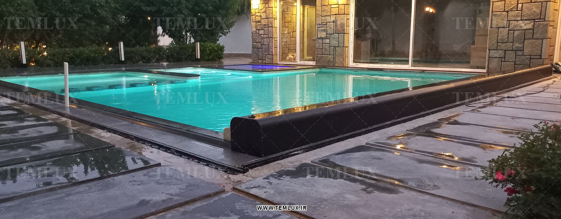 پوششی است که با فشار یک دکمه باز و بسته میشود و از ورود شاخ و برگ درختان، زباله و حشرات جلوگیری میکند و به این ترتیب استخر را همیشه تمیز و آماده نگه میدارد. محوطه استخر را برای کودکان و حیوانات خانگی امن میکند. مانع تبخیر آب و کاهش دما میشود و نیز از ورود اشعه UV و تشکیل جلبک جلوگیری میکند.